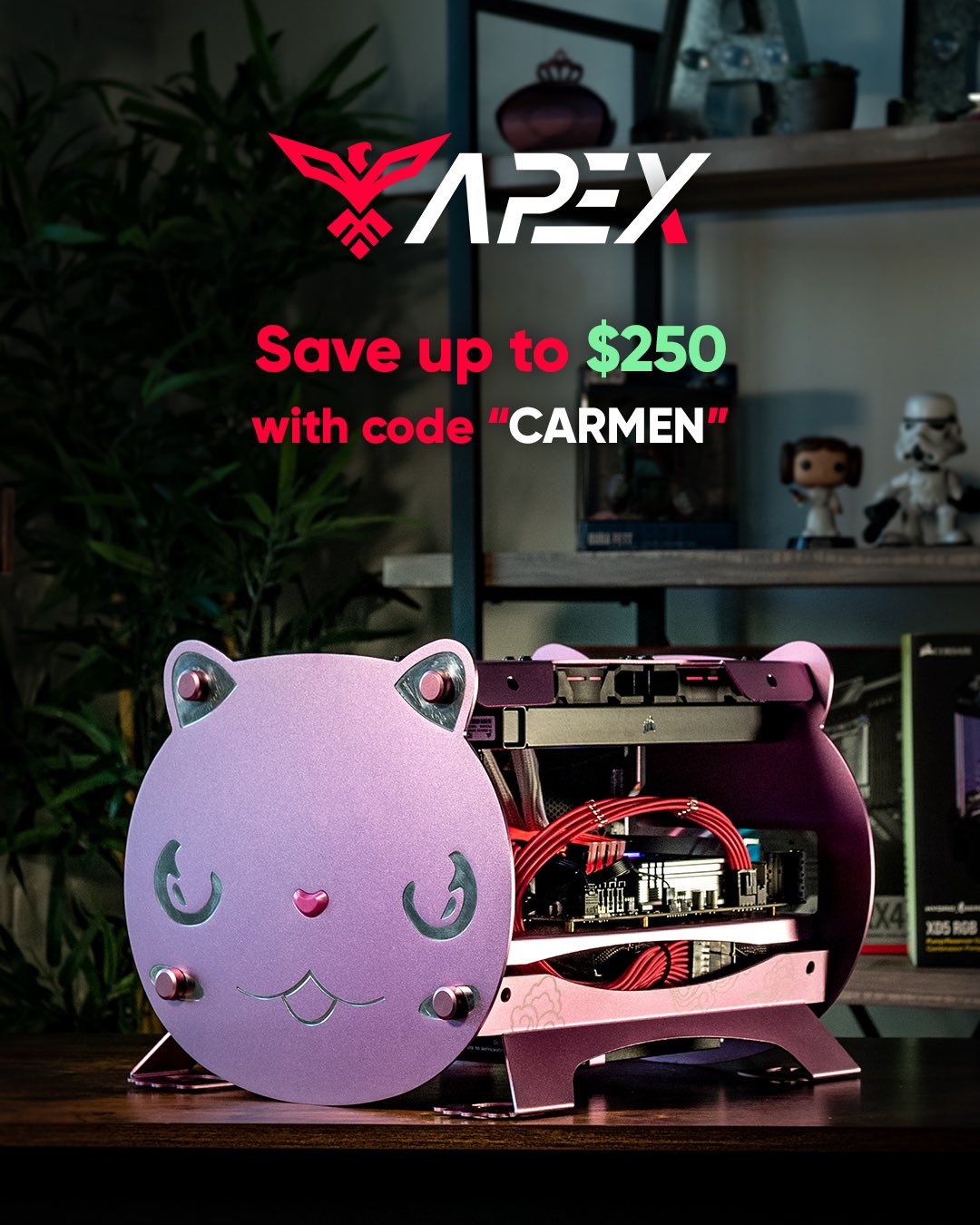 Apex Gaming PCs is a gaming computer brand that focuses on assembling the fastest and most affordable Gaming PCs for the most discerning gamers. The brand is partnering with Carmen King to create the perfect Sims 4 experience for PC gamers around the world. Powered by AMD, and NVidia's newest offerings, Carmen's pink kitty cat PC line is designed to ensure your gaming experience is top of the line.
